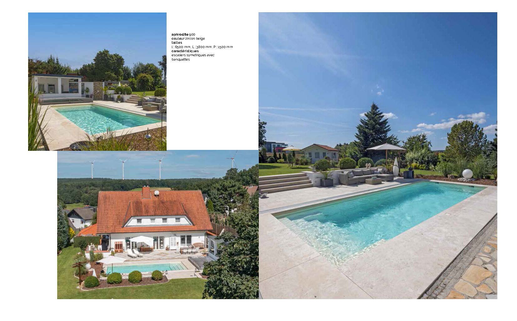 Ce modèle est un design de piscine vraiment minimaliste. Les escaliers sont confortables et très pratiques. Les deux premières rangées d’escaliers offrent une surface supplémentaire pour s’asseoir, mais elle est modérément grande, de sorte qu’il n’y a pas de banc qui occupe plus d’espace.